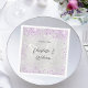 Ein silbernes Imitat mit Glitzer aus lila Imitaten, Glitzern und einem Schmetterling wie ein Wasserzeichen. Personalisieren und Ihre Namen und das Hochzeitstermin.