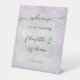Ein silbernes Imitat mit violettem, lavendelfarbenem Imitat, Glitzern aus Glitzer und ein großer Schmetterling wie ein Wasserzeichen. Mit dem Text: Willkommen zu unserer Hochzeit. Personalisieren Sie Ihre Namen und fügen Sie sie hinzu.