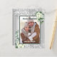 Imitat silber aussehend, mit weißen Blumen geschmückt, Blume, Eukalyptusgrün und Imitaten silberner Glitzer, Glitzern. Personalisieren und fügen Sie Ihr Foto, Namen und Hochzeitsdetails.