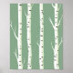 Minimalistischer Kunstdruck aus weißen Birkenstämmen auf weichem grünem Hintergrund. Dieses Bild würde Skandi, Minimalistisch oder modern dekoriert schön Anzug.