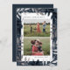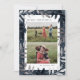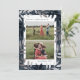 Eine elegante Foto-Urlaubskarte mit handgezogenen Kiefernästen in einer festlichen Imitat-Folie silber und marineblau Farbpalette von Stacey Meacham. Die Rückseite bietet eine weitere Möglichkeit, um eine herzliche Urlaubsbotschaft an Freunde und Familie zu senden.