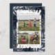 Eine elegante Foto-Urlaubskarte mit handgezogenen Kiefernästen in einer festlichen Imitat-Folie silber und marineblau Farbpalette von Stacey Meacham. Die Rückseite bietet eine weitere Möglichkeit, um eine herzliche Urlaubsbotschaft an Freunde und Familie zu senden.