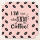 "EIN YAWN IST NUR EIN SILENTER SCREAM FÜR KAFFEE!" Niedliches neues Kaffeedesign gerahmt mit Bohnen auf pastellfarbenem Hintergrund. Von Monkey Business Graphic Design und auf einem breiten Sortiment von Wohngestaltung, Bekleidung und Zubehör. 2021