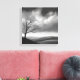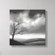 Dieses eindrucksvolle Landschaftsgemälde in Schwarz/Weiß besticht durch einen stehenden einsamen Baum in einem weiten Tal unter einem bewölkten Himmel. Die zeitlose Szene erinnert an Gefühle der Einsamkeit, der Ruhe und des andauernden Powers der Natur.