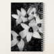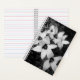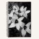 A black and white notebook featuring a delicate floral design in a soft monochrome style. The gentle contrast of light petals against a darker background creates a calm and elegant look, perfect for everyday notes, journaling or creative writing. This minimalist design adds a subtle aesthetic touch while remaining timeless and versatile. Ideal for those who appreciate nature-inspired details and clean, modern style.