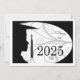 Eine Silhouette eines jungen Mannes in seiner Mütze und in seinem Kleid. Blühende Designs im Hintergrund. Die Rückseite hat einen schwarzen Hintergrund mit weißen Buchstaben für die Graduierungsankündigungen.
