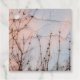 Budgetierte Äste aus Ältesten, silhouettiert von einem pastellfarbenen Himmel auf einem rustikalen, strukturierten Holzhintergrund. Fotografie und digitale Kunstwerke von Sandra Foster © Sandra Foster Designs - Zazzle.