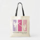 Eine moderne grafische Tasche mit Silhouetten Ballerinen auf rosa- und lavendelfarbenen Blöcken mit dem Zitat - Tanz ist die verborgene Sprache des Souls - zugeschrieben Martha Graham. Ein originelles Mango Moon Studio Design.