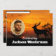 Feiern Sie das Leben Ihres Lieben mit diesem Design mit einem schönen Buck silhouetted gegen einen feurigen orangen Sonnenuntergang.