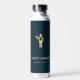 Fügen Sie Ihre Details zu dieser beigen Kellner-Silhouette über blaues Hintergrunddesign für Ihr Event-Business hinzu.