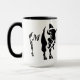 Schwarzes Büffel in Silhouette. Dieser Bison ist von der Vorderseite illustriert. Der Kopf und die Hörner stehen im Vordergrund. Die Mitte des Körpers wurde für Text oder ein Monogramm geöffnet.