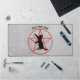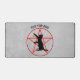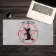Diese Schreibtischmatte hat eine schwarze Silhouette, die einen glänzenden goldenen Stern auf einem roten Pentagramm in einem roten Kreis auf hellgrau sucht. Passen Sie Ihren Text mit der Vorlage an.