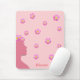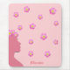 Rosa Silhouette, rosa Blume und Kalligraphie auf hellrosa Hintergrund.