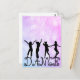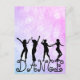 Silhouette Tänzer tanzen auf dem Wort tanzen auf einem rosa/blauen Hintergrund.