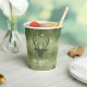 Dieser Papierbecher bietet Hirsche, die Silhouette und Schneeflocken in dunkelgrüner Farbe auf einem strukturierten, moosgrünen Hintergrund anheizen. Optional können Sie den Text 'Happy Holidays' und eine Vorlage zum Hinzufügen Ihres Namens und/oder eines anderen Textes verwenden. Suchen Sie ID861 durch ID864, um weitere Farboptionen und andere Produkte in diesem modernen, weihnachtlichen Design-Set zu sehen.