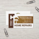 Die Abdeckung besteht aus einer Holzschicht, die eine handwerkliche Silhouette aus Leiter, Hammer und Rollenbürste enthält. Ganz oben finden Sie Ihren prestigeträchtigen Namen, den Jobtitel und die Kontaktdaten mit dem Firmennamen "ZUHAUSE REPAIRS" in der Nähe der Basis. Hinter einem weißen Cover befindet sich oben ein Hammerlogo, gefolgt von Ihrem renommierten Namen, Kontaktdaten und einer Slogan-Beschriftung, um Ihre Dienste zu veröffentlichen. Eine Kreativkarte für Handwerker, Tischler und Baugewerbe. #handyman #homerepairtragan #construction #Gebäude #tragning #remodeling #building #homerepair #interiordesign #homeimprovement #handymantools #zazzlemade