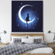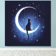 Extra Groß (101.60cm x 101.60cm) Canvas Print Wandkunst. Eine Katze sitzt auf dem Halbmond umgeben von Sternen im schönen Mitternachtsblauen Himmel.