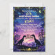 Silhouetten von Dinosauriern mit Sternenhimmel und glühendem Mond in der Nacht Dinosaurier Thema. Ideal für Dinosaurier-Liebhaber, die sich für ihre Geburtstagseinladung begeistern.