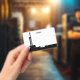 Horizontales Abzeichen für Mitarbeiter oder Veranstaltungen mit Silhouette einer Ölbohrplattform in Schwarz.