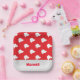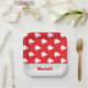 Fügen Sie Ihren Namen auf dieser weißen Santa Claus Silhouette auf rotem Muster Hintergrund.