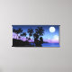 Silhouette eines Paares, das sich am Strand befind Leinwanddruck