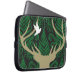 Silhouette eines Rotwilds, der Taube und des Laptopschutzhülle