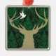 Silhouette eines Rotwilds, der Taube und des Silbernes Ornament