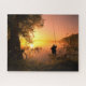 Silhouette Fisherman am See bei Sunset Puzzle