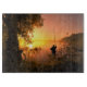 Silhouette Fisherman am See bei Sunset Schneidebrett