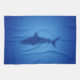 Unscharfe Hai-Silhouette vor blauem Untergrund