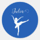 Silhouette Ballerina in weiß und kobaltblau (0047AB). Es kommt mit einem eleganten Skript. Graceful Design von GDJ und Alma Wad. Personalisieren Sie diesen klassischen Rundaufkleber mit einem Namen. Tipps : Sie können jede Farbe dieses Designs auch die Ballerina ändern.