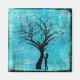 Blau, türkis und schwarz Baum und Silhouette Kühlschrank Magnet.