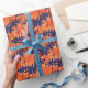 Silhouette mit blauer Palme, orangefarbener Hinter Geschenkpapier