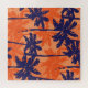 Silhouette mit blauer Palme, orangefarbener Hinter Puzzle