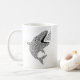 Beginnen Sie Ihren Tag mit einem Schuss Kreativität. Diese Tasse zeigt eine Silhouette von Walen, die aus einer kleinen Fischschule hergestellt wurde. Es gibt eine Spur von Fischen, die direkt ins Maul des Wals schwimmen, was dem Design ein Gefühl der Bewegung gibt. Es ist das perfekte Geschenk für Fans des Meereslebens, Kaffeeliebhaber und alle, die ein wenig Unterwasserzauber mit ihrer Morgenbraue schätzen.