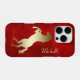 Hier ist ein einzigartiges Handy-Fall, das eine schöne goldene Silhouette Aufziehen Pferd Bild mit einem Gradienten burgundy roten Hintergrund. Fügen Sie den Namen in passendem Gold auf der rechten Seite, und Sie haben ein elegantes Gehäuse, besonders für alle, die Lieben Pferde. Klasse!