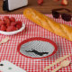 Party-Papierschalen mit einer Reitpferde-Silhouette auf schwarz-weiß Streifen mit rotem Rand ist Spaß, Snacks, Leckereien, sogar Dessert zu servieren. PASSENDE Artikel in unserem Geschäft.