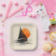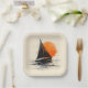 Silhouette Segelboot Sketch mit Orange Sun Pappteller