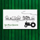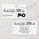 Das Design der Visitenkarte umfasst einen Traktor für Silhouetten und eine bezaubernde, in Schwarz, Weiß und Grün zeichnend Bauernlinie. -