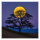 Dieses faszinierende Kunstwerk weist eine Silhouette eines Baumes auf, der unter einem glühenden Vollmond hoch stehend ist. Der Kontrast zwischen dem dunklen Baum und dem hellen Mond erzeugt ein Gefühl von Rätsel und Wunder. Dieses Stück wäre eine schöne Ergänzung zu jeder Zuhause-Dekoration.