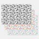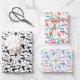Fairstylistische Papierfolien mit einem Muster von Scheren, Kämmen und Haartrocknern in drei verschiedenen Farbvarianten: schwarz und weiß; Tomatenrot, Gelb, Blau und lila; und Pastellfarben.