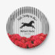 Talk Derby to Me Party Papier-Teller bieten eine Racehorse-Silhouette auf schwarzen Streifen und rote Rosen, perfekt für Ihre Derby-Tag-Feier. PASSENDE Artikel in unserer Sammlung.