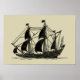 Schöne Silhouette eines Segelschiffs mit Billardsegeln. Sie können sogar einige stehende Figuren auf dem Deck sehen, die den Fortschritt des Schiffes überwachen oder einfach nur die coole Meeresbrise genießen. Wer das Meer Lieben hat, sollte dieses Stück kaufen!