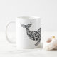 Tauchen Sie ein in den Alltag mit dieser Tasse mit einer künstlerischen Silhouette eines Wals, der aus kleinen Fischen besteht. Ein paar kühne Schwimmer machen sich in den offenen Mund des Wales, und fügen jedem Schluck eine Touch Geschichtenerzählen hinzu. Diese Tasse ist ideal für Ozeanliebhaber, Kunstliebhaber und alle, die ein gedankenvolles Design lieben.