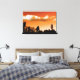 Dunkle Seidenbäume mit orangefarbenem Himmel und weißen Wolken