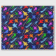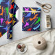 Ein nahtloses Muster aus bunten Silhouetten von Militärflugzeugen und farbenfrohen Ziertexten vor dunklem Hintergrund. Ein Papier im Luftfahrtstil zum Verpacken Ihrer Geschenke. Sie können dieses Design auf eine Reihe anderer Produkte übertragen. Sei einfach kreativ, mach etwas Eleganz und sei glücklich!