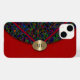 Dieses iPhone 14 Case von ZoeSPEAK ist im Stil eines Kupplungssacks entworfen. Die Klappe der Tasche ist ein buntes Terrazzo-Muster, hauptsächlich dunkelgraue, aber durchgestreut mit Flecken von Rot, Blues und Grüntöne. Der untere Teil der Tasche, unter der Klappe, ist Terrakotta in Farbe mit einer leichten Seidenstruktur. Der Flügelklappenverschluss ist ein ovales, nach außen kurvierendes, goldfarbenes Klappenverschluss mit einem Monogramm, das personalisiert oder gelöscht werden kann. Auf der Seidenterrazzo , die sich vom goldenen Oval bis zu den oberen Ecken erstreckt, befinden sich zwei Bänder aus Terrakotta mit blauen violetten Kanten.