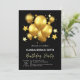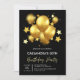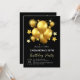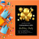 Elegante Einladung zum Geburtstag mit goldenen Ballons und funkelnden Sternen auf einem schwarzen Hintergrund. Jede Einladung zum Geburtstag.