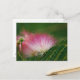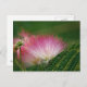 Diese florale Postkarte weist eine seidig rosa und weiße Mimosa-Blume mit Blätter auf einem natürlichen Hintergrund auf.
