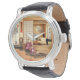 Uhr, Klassische Damenuhr mit schwarzen Lederarmband